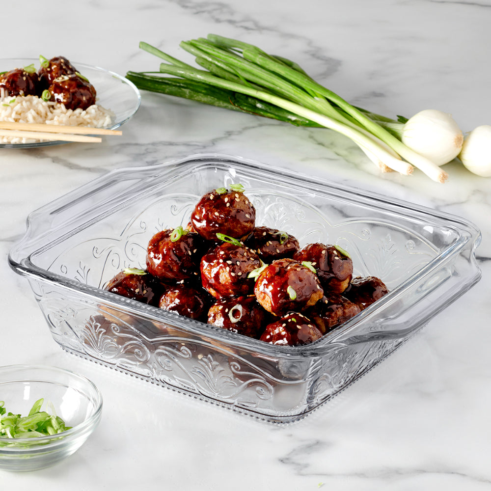 • Beautiful and functional bakeware range to bake meat, pasta and casseroles and more• Tempered-tough glass baking dishes are oven (up to 218), microwave, fridge, freezer, and dishwasher safe