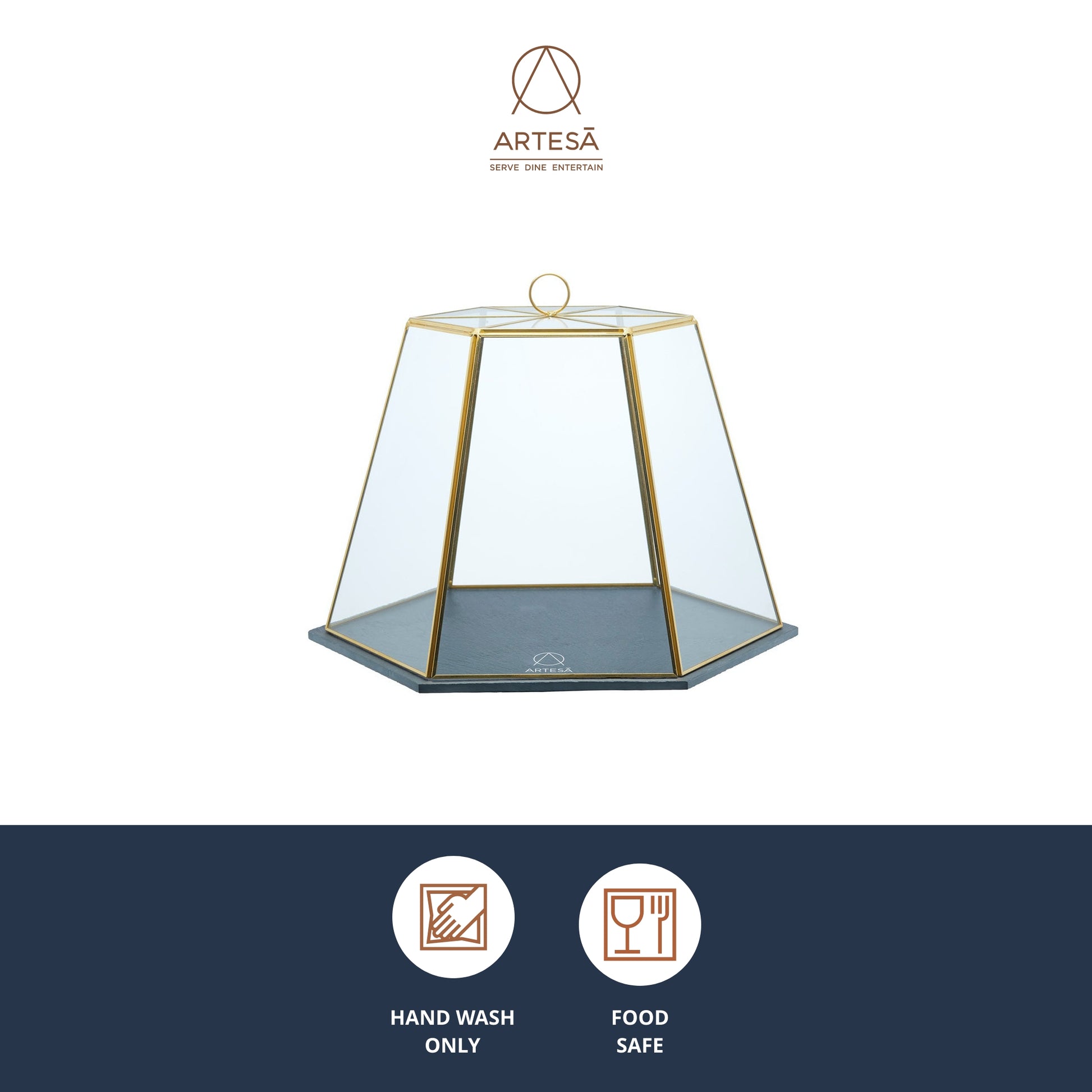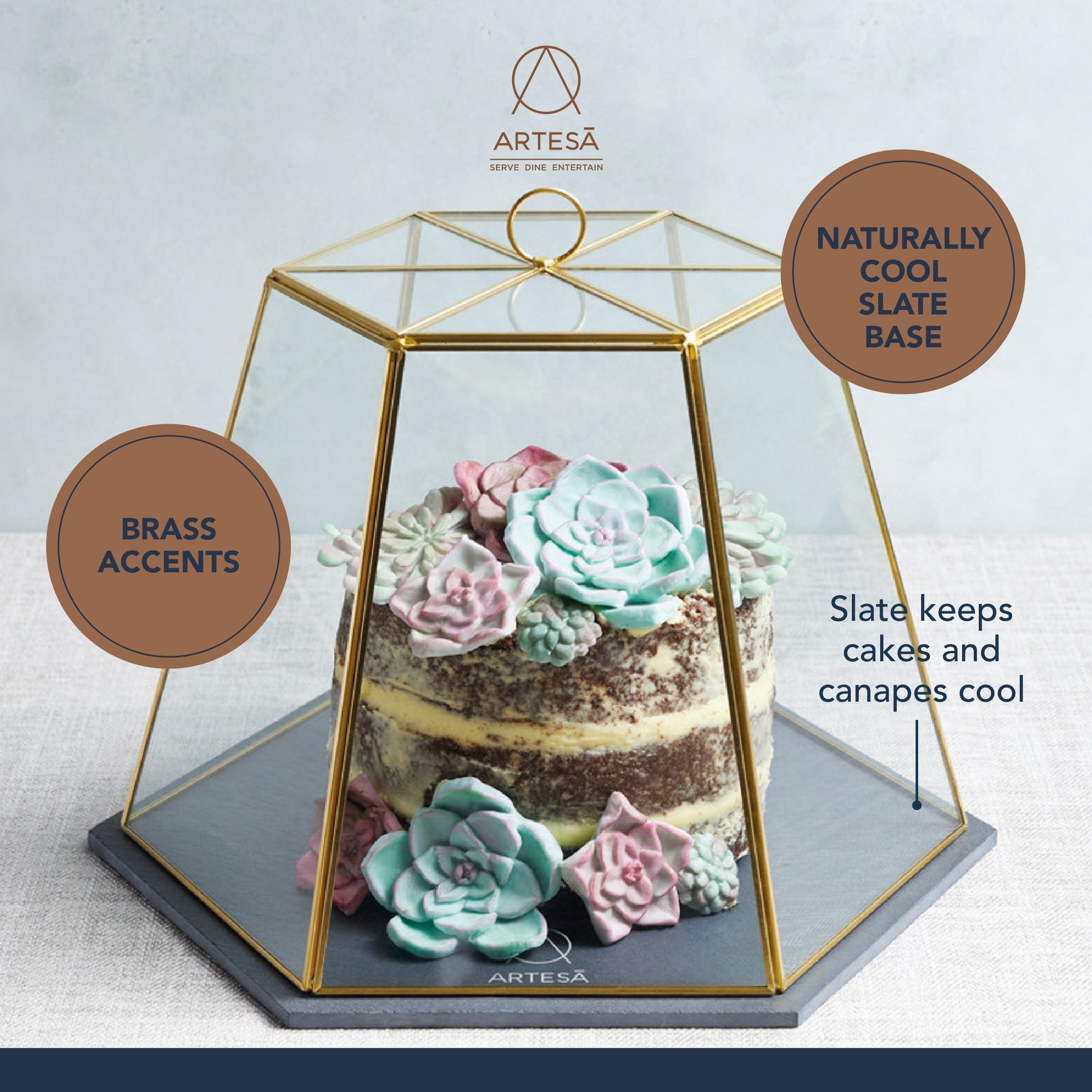 • PRESENT CAKES, CANAPES AND CHEESE IN STYLE: with Artesà's geometric glass cloche and slate board