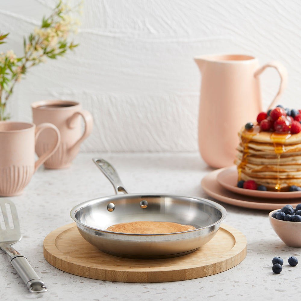 Enhance your kitchen with superior quality cookware using the Baccarat® iconiX® Twin Frypan 20cm & 26cm. Made from the highest grade 18/10 stainless steel and with a durable 5mm impact bonded base that works to distribute heat evenly, the Baccarat® iconiX® Frypans are a must-have cookware piece for any kitchen. With an easy clean mirror finish interior, stylish satin finish exterior and stay cool cast stainless steel riveted handles, the Baccarat® iconiX® Frypans will make cooking like a professional part of your everyday life. Suitable for all cooktops including induction, the Baccarat® iconiX® range is also oven safe and dishwasher friendly up to 220°C for your convenience.