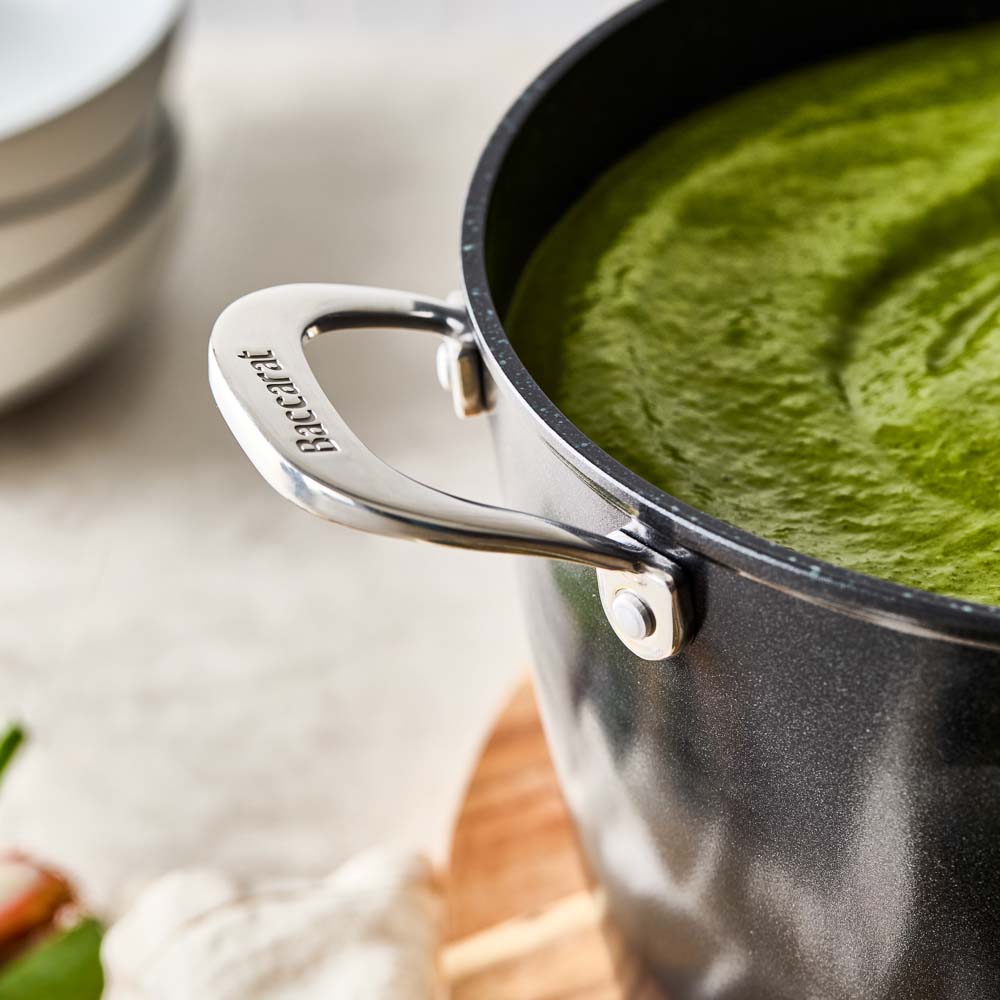 Baccarat® GREEN STONE® cookware offers the utmost in healthy cooking. The revolutionary design retains natural flavours and nutrients, allowing you to cook with less butter and oil. This premium cookware is 100% Toxin free: PFOA FREE, PTFE FREE, Lead FREE, and Cadmium FREE, ensuring a safe cooking experience. Its durable stone fusion technology provides outstanding heat retention and even heat distribution, while the scratch-resistant, next-generation ceramic non-stick interior and exterior surface simplifies cleanup. This versatile 26cm/8L Stockpot is compatible with all stovetops, including induction, and oven safe up to 220°C excluding lid. Equipped with a tempered glass lid to easily monitor your food as it cooks and an ergonomically designed handle that stays cool to the touch, providing a secure and comfortable grip during cooking. Invest in quality with Baccarat®'s LIFETIME GUARANTEE.