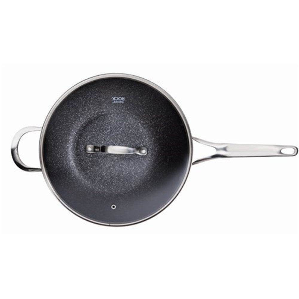 Baccarat® has created the Rock range of cookware so you can have professional quality and durability in your own kitchen. It features a toughened, reinforced 3 layer non-stick surface that is durable like (you guessed it) rock, plus it’s suitable for all cooktops including induction. Manufactured using a unique process called small pellet impact technology that results in super durability and excellent food release. How does the Baccarat® Rock Wok With lid 30cm compare to other non-sticks? On standard abrasion tests the best conventional non-sticks reach 20,000 cycles, most reinforced non-sticks reach 400,000. This cookware reaches 700,000 cycles and still stops food from sticking! With a heavy gauged forged body, heat is distributed evenly and the weight ensures the pan will be warp free for a lifetime of daily use. This Baccarat® Wok is also dishwasher safe and oven safe to 220C. Baccarat® is so confident with the Rock frying pan that they offer a lifetime guarantee when cared for according to the Care and Use instructions provided..