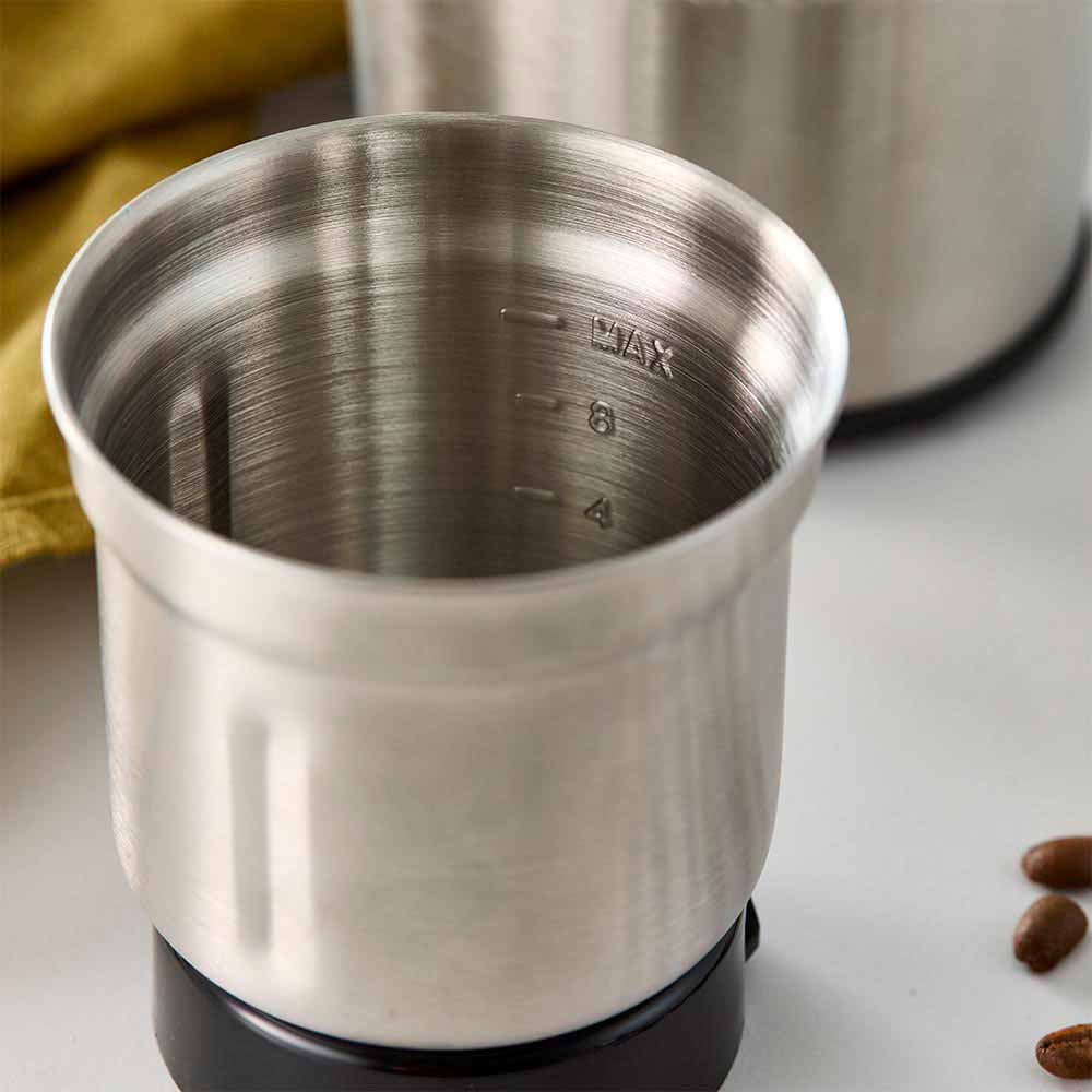 Whether it's coffee, herbs or spices, freshly prepared delivers exceptional flavour, the Baccarat® The Flavour Maker Coffee & Spice Grinder can achieve this in seconds. The inclusion of two stainless steel cups for dry and wet grinding allows you to be adventurous with your cooking. The two-blade grinder cup is ideal for dry ingredients such as creating delicious spice blends or freshly ground coffee beans, and the four-blade grinder cup is excellent for wet ingredients such as garlic, ginger, or homemade pesto. The stainless-steel construction allows for fuss-free cleaning, all removeable parts are dishwasher safe, while the exterior of the appliance can be cleaned with a soft damp cloth. The compact and convenient design of the Baccarat® The Flavour Maker Coffee & Spice Grinder makes it perfect to store in your kitchen without taking up space.