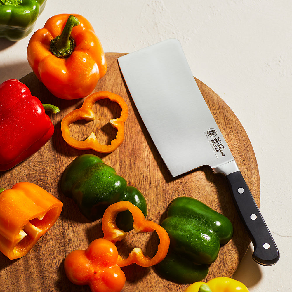 The Baccarat® WOLFGANG STARKE® Cleaver (17.5cm) has been engineered and weighted to make heavy chopping easier. A cleaver can take on heavier root vegetables with more force than a chef's knife or santoku knife. Aside from breaking down tendons and bones, cleavers can also be used for pounding, mincing, dicing, and slicing a variety of other foods.