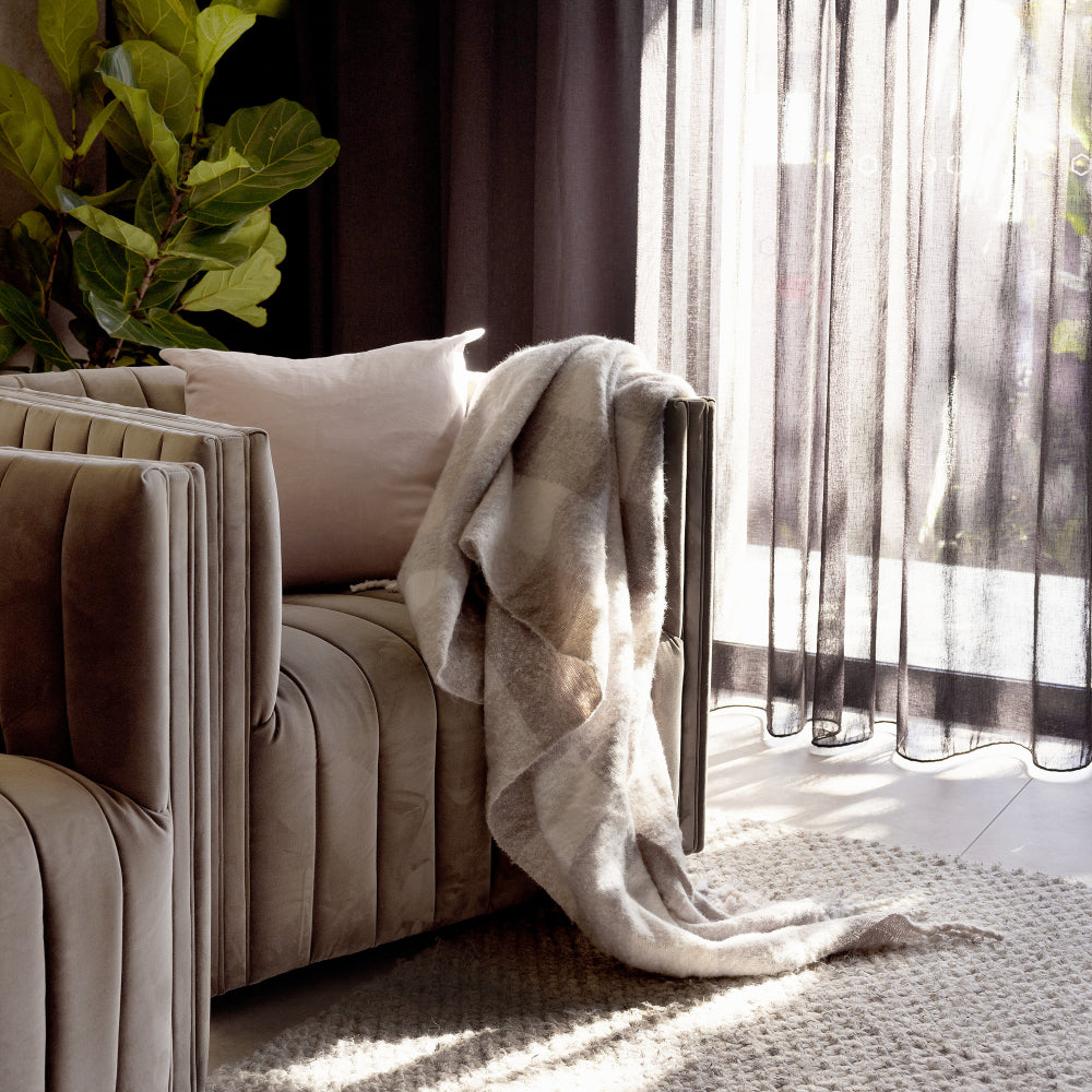 If you're looking for a beautiful, classic throw with warmth, softness, and volume, the Cosmo Throw is the perfect choice. Available in a range of stunning colours, its check pattern adds timeless charm. Extra-long with large tassels on both ends, its crafted from recycled polyester and mimics the feel of mohair, offering both luxury and sustainability.