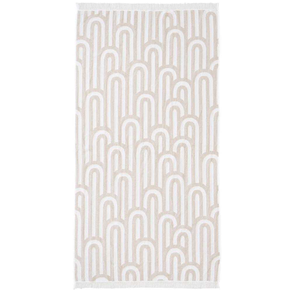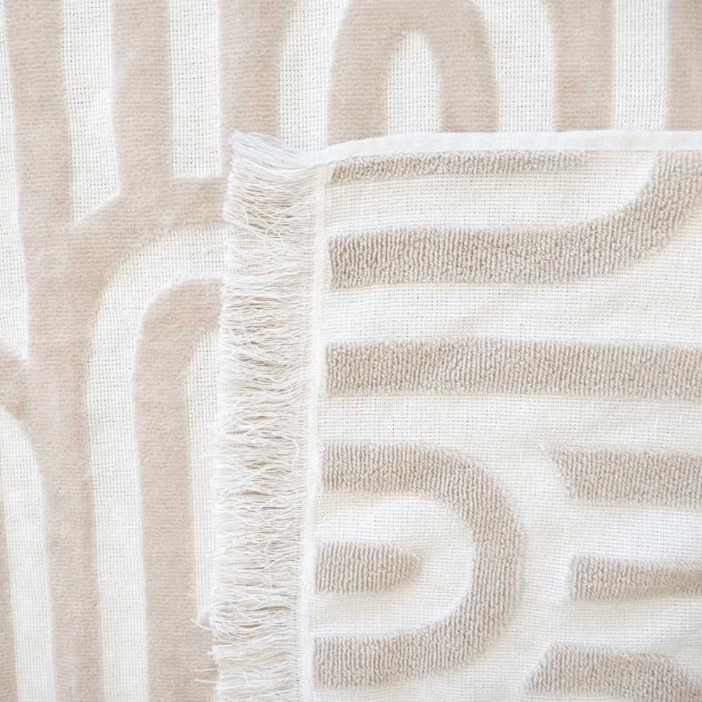 This cotton beach towel is an ideal accessory for the beach or pool. It is made using a high-low pile technique, as well as a playful natural fringing along both ends. The towel is large, but lightweight, which makes them compact for travel and quick to dry.