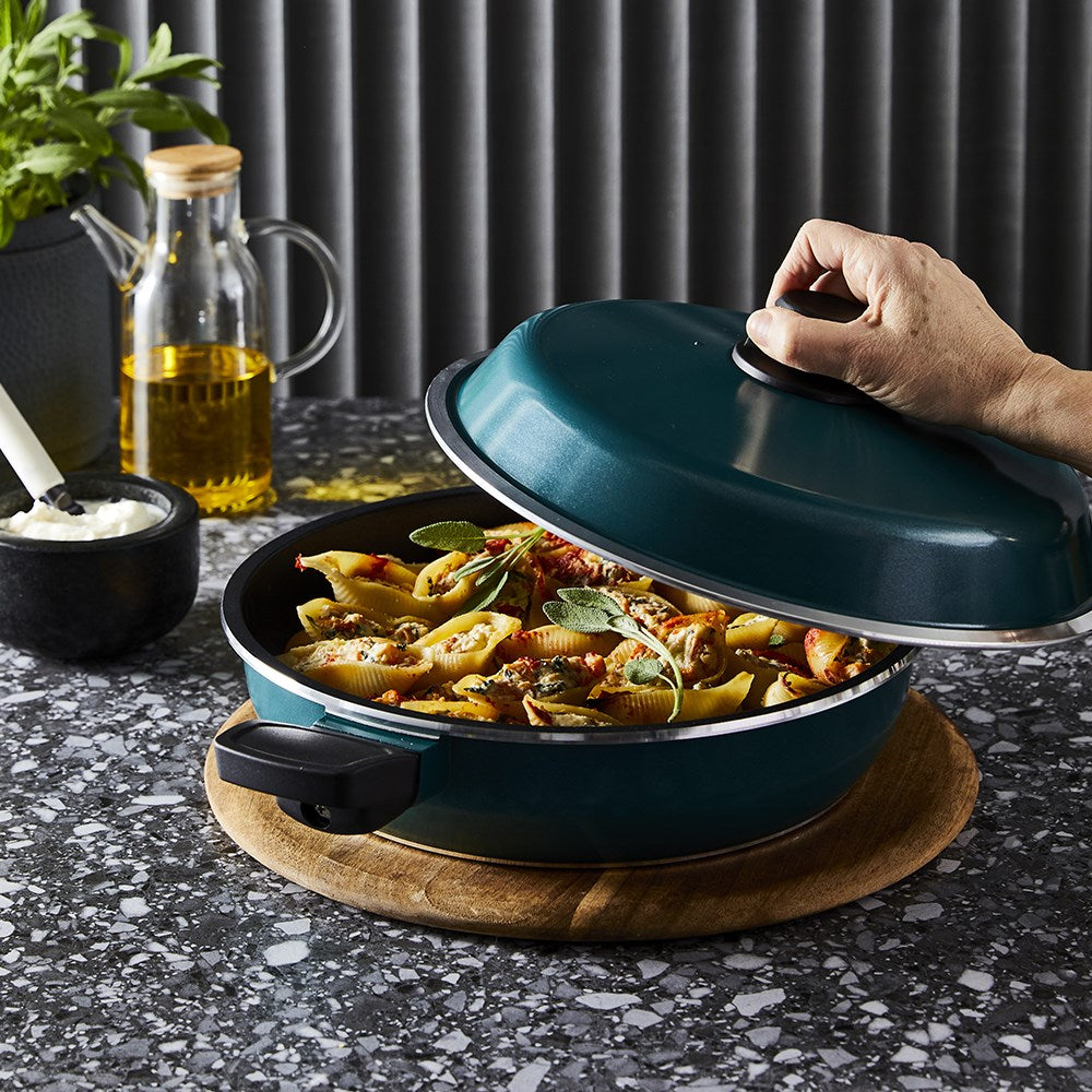 With generations of families using them, there's no reason not to trust in the Bessemer® name – and now the iconic Australian cookware brand is available at House! The legacy of Bessemer® speaks for itself, with many pieces still providing families with unparalleled results for decades. Whether you're finally replacing mum's old set or just looking to get one of your own, you can build an all-powerful cookware set with just a few pieces from Bessemer®'s core signature range like this 32 x 7cm Multi Fry Pan! Made using the same methods for 50 years, Bessemer® cookware is lighter and just as durable as your cast iron favourites, plus they can even cook oven staples like cake, pizza and roast on the stovetop thanks to their extra deep body and Bessemer®'s patented “oven effect"" cooking capabilities when paired with the Bessemer® Non Stick Universal Lid. The interior and exterior of Bessemer® cookware features a premium European ceramic fusion triple layer non stick coating that provides smooth and effortless food release, abrasion and scratch resistance, and fast clean up every time you cook. Fitted with a magnetic stainless steel induction plate, Bessemer® cookware is suitable for use on all cooktops and ensures a rapid and even heat distribution to prevent hot and cold spots, providing you with perfect results. For added comfort and safety, the Multi Fry Pan is fitted with soft, stay cool handles that are generously sized for a secure grip and remain cool to the touch, and includes a bonus helper handle that can take it from a frypan to casserole in an instant. Available in classic black, red, stone and teal colourways, the new Bessemer® cookware is exactly as remembered and ready to take on any recipe. Food definitely tastes better in a Bessemer®.
