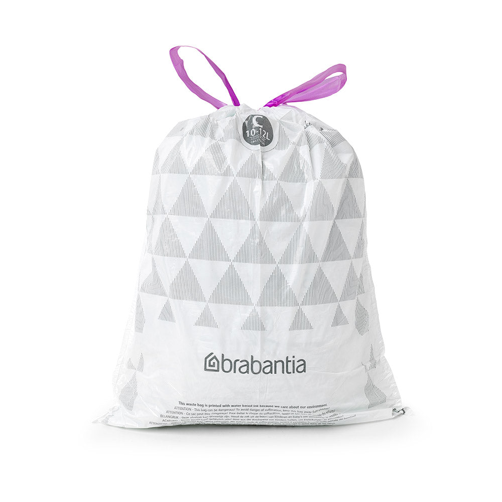 The Brabantia Bin Liners are always the perfect fit! Just match up the colour code to your Brabantia bin and away you go. These durable bin liners are made of extra strong plastic, so they’re tear resistant. Eliminate the eyesore of your bin with bin liners free of ugly overwrap- the Brabantia Bin Liners are invisible when the lid is closed. When it’s time to take the rubbish out, the handy tie-tape allows for easy cleaning and transport, and the ventilation holes prevent a vacuum so changing to a new liner a breeze. Conveniently dispenses contains 40 bin liners that perfectly fit your Brabantia bin.
