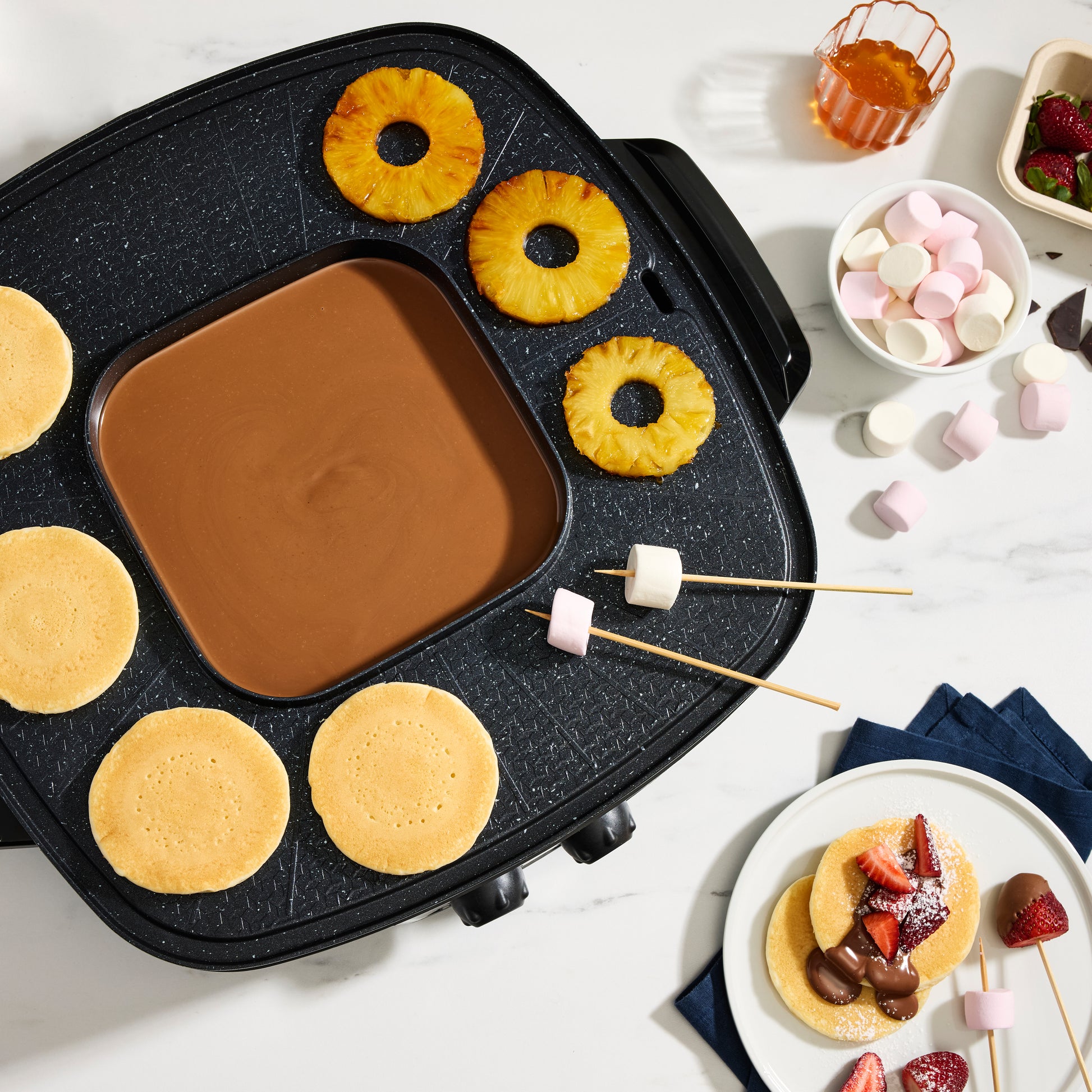 • Durable glass lid for heat retention and monitoring• Great for gatherings with family or friends