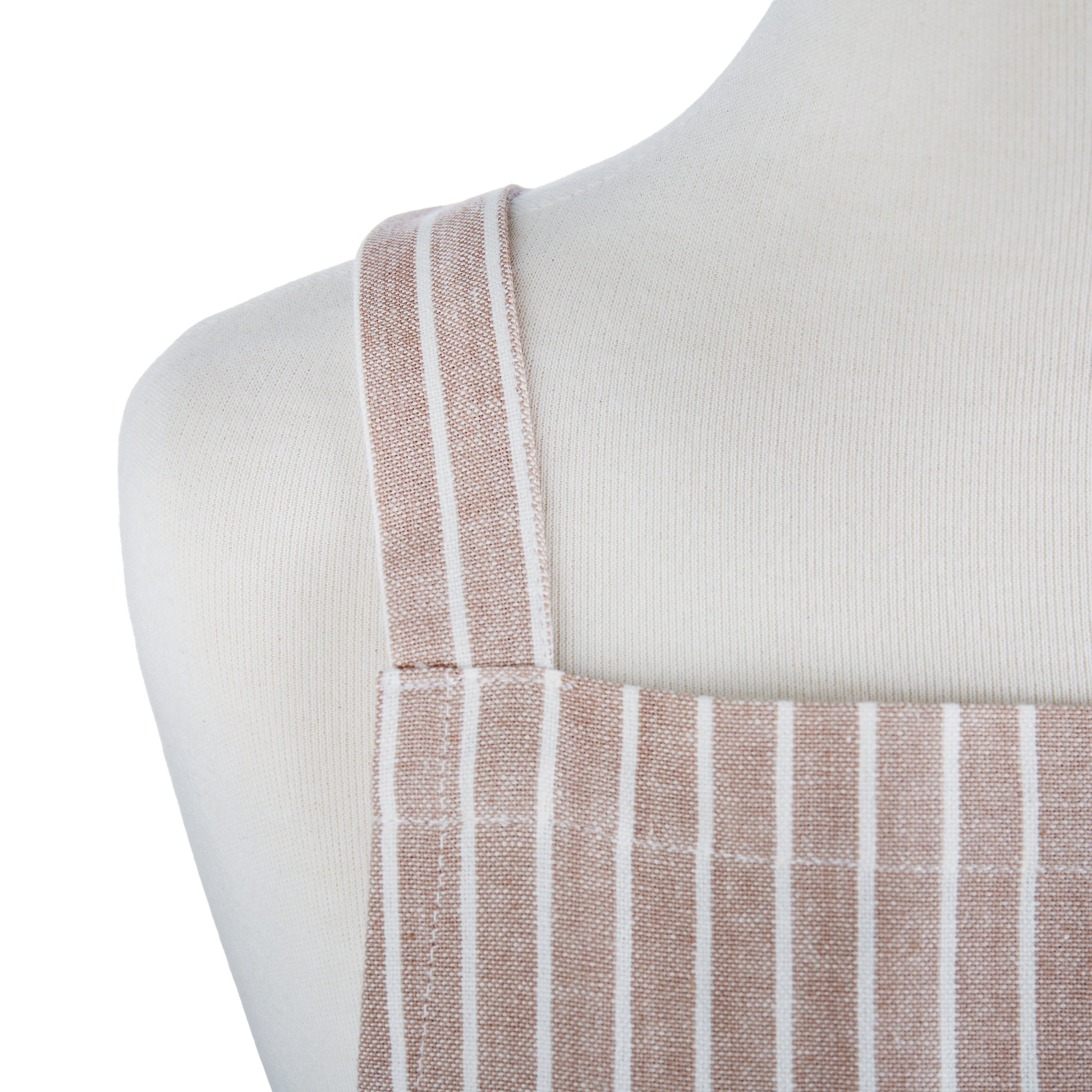 Our range of D&W aprons protects your clothing from splashes and stains while keeping you looking stylish while cooking. This Butcher Stripe Apron is the perfect accessory when entertaining friends and family around the BBQ. Made from 100% cotton, it features a vertical butcher shop-style taupe and white striped print that conjures up images of countryside summers. It has a convenient neck strap and tie-back waist with a large front pocket. This range comes in three different colours with matching oven glove, double oven glove and tea towel – mix and match them all to complete the look! Liven up your cooking with this colourful Butcher Stripe Apron from Davis & Waddell.