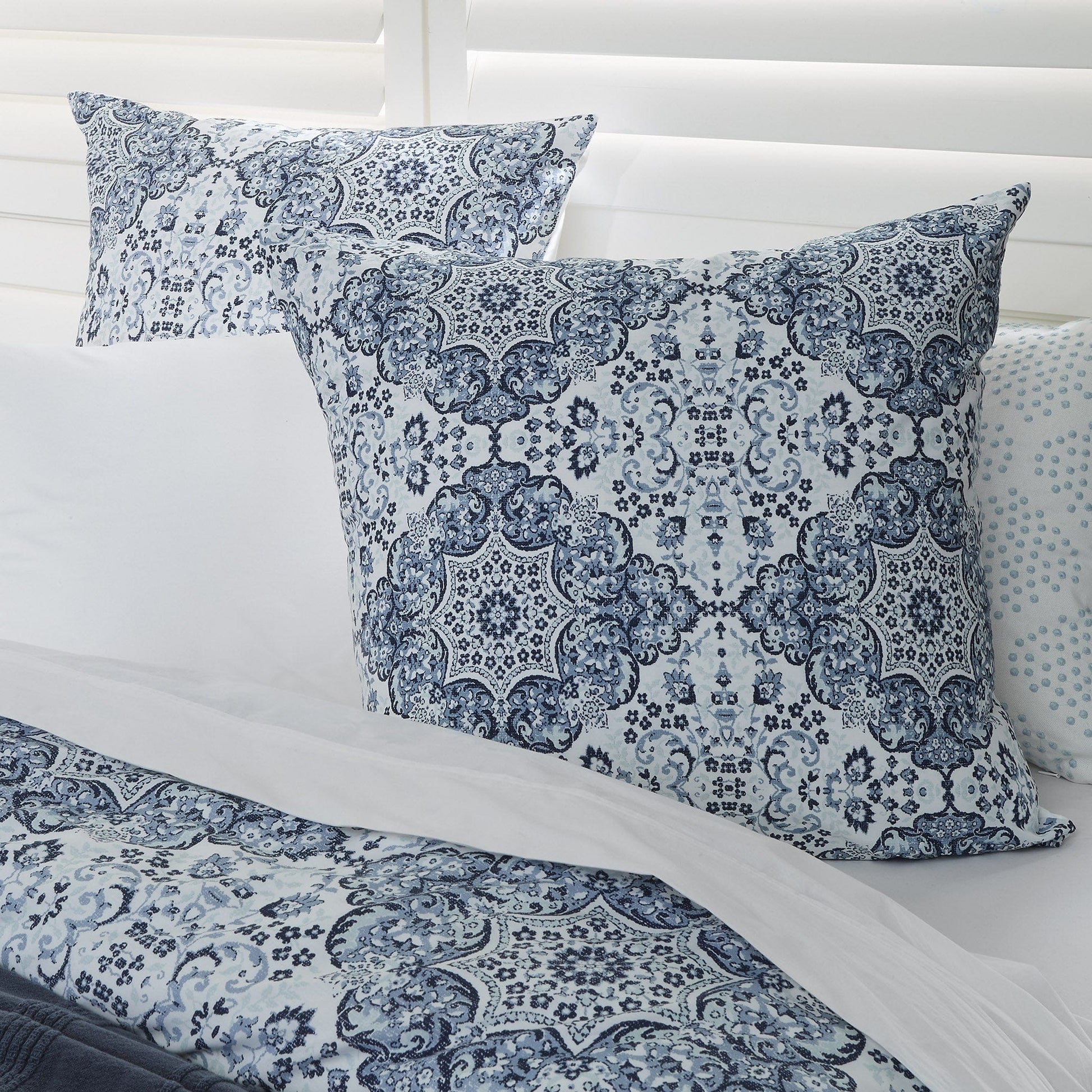Take your bedding to the next level with the Deborah Hutton Beaufort European Pillowcase. Enjoy that beachside feeling wherever you may reside with the Deborah Hutton Beaufort European Pillowcase. The intricate medallion pattern in refreshing blues makes this a pretty addition to the bed. The soft cotton sateen base cloth adds luxe. Boasting a blue and white colour palette that will have you dreaming of seaside locations. Mix and match the Deborah Hutton Beaufort European Pillowcase with other items from the Deborah Hutton range to create a space that is truly unique to you. Or pair it with the Deborah Hutton Beaufort Quilt Cover Set to complete the look.