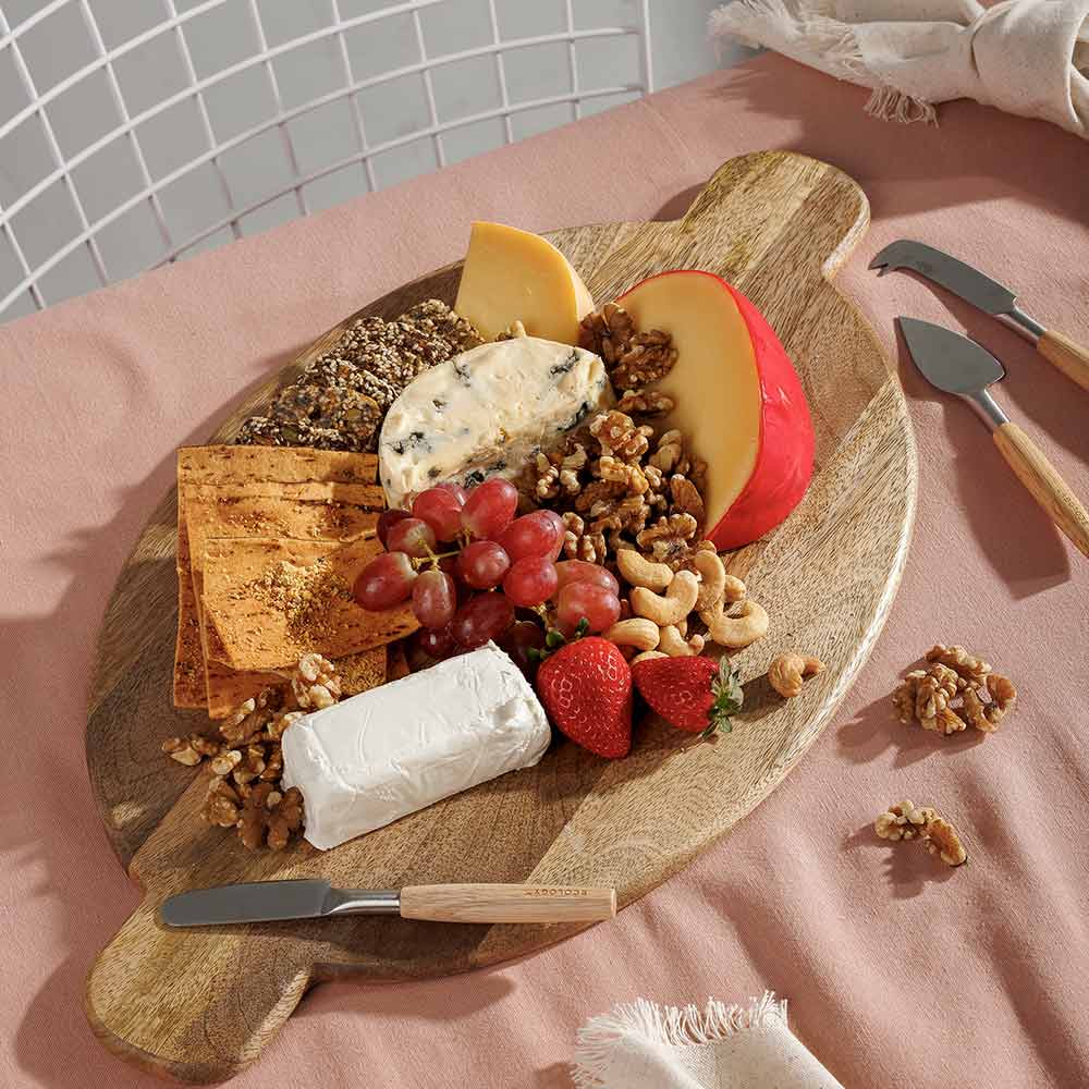 Simplified, relaxed gatherings or generous, overflowing feasts all feel right at home with Ecology's Drift collection. Made of mango wood, in varied golden tones, these platters, bowls and accessories reveal the natural wood grain for an authentic feel. Rounded shapes and curved edges are finished with chunky handles to impart a pleasing earthiness to this serveware series.