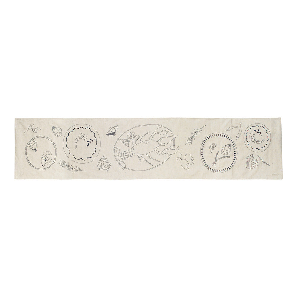 A welcoming table starts with an inspiring base and Ecology's Feast collection is the perfect place to begin. On a neutral, stone-hued material, Designer Noreen Falvey's ocean-inspired illustrations are embroidered in an inky blue. This napery collection, crafted from a cotton/linen blend, offers two table cloth options as well as napkins and table runner.