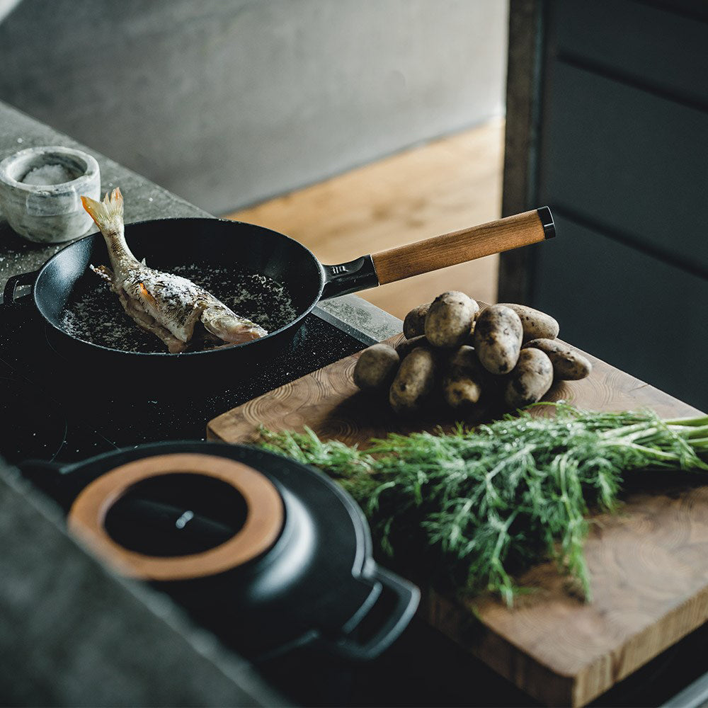 Enjoy delicious grilled cheese sandwiches, meats, vegetables and more with the ultra-tough Norden Cast Iron Non-Stick Grill Pan 26cm by Fiskars! Ideal for achieving those sought after, authentic grill marks, this grill pan is a delightful addition to your culinary collection. Made from premium quality cast iron, this ultra-tough grill pan is designed to withstand high temperatures exceptionally well and distribute heat evenly for a thorough cook. Made in Finland, the Norden Grill Pan comes equipped with a stylish and removable birchwood handle that offers exceptional comfort and control when handling. Finished with Thermium mineral treatment on the surface, this grill pan provides exceptional non-stick properties for healthy cooking and fuss-free food release. Explore your passion for cooking and create delicious grilled treats on the Norden Cast Iron Non-Stick Grill Pan 26cm by Fiskars!