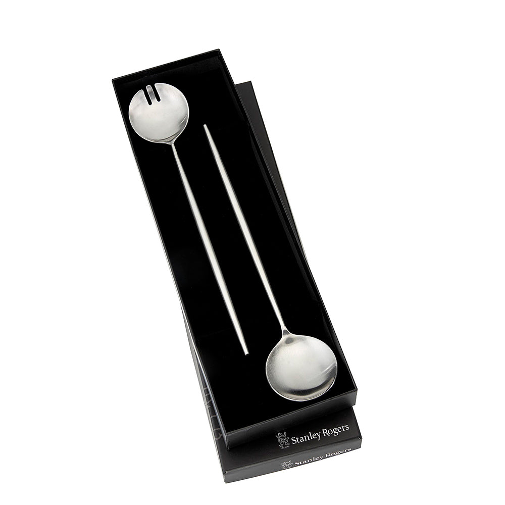 Introducing the Stanley Rogers Piper Salad Servers. Add more designer style to your table with Piper. The elegant, slim salad servers are sure to impress. Forged from premium 18/10 stainless steel to last a lifetime. Available in 3 on-trend colours, Bronze, Satin, and Black to suit any style or casual table setting. Set includes 2 x Salad Servers.